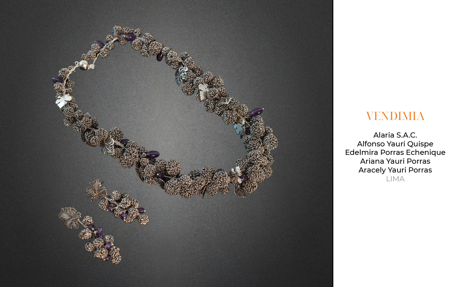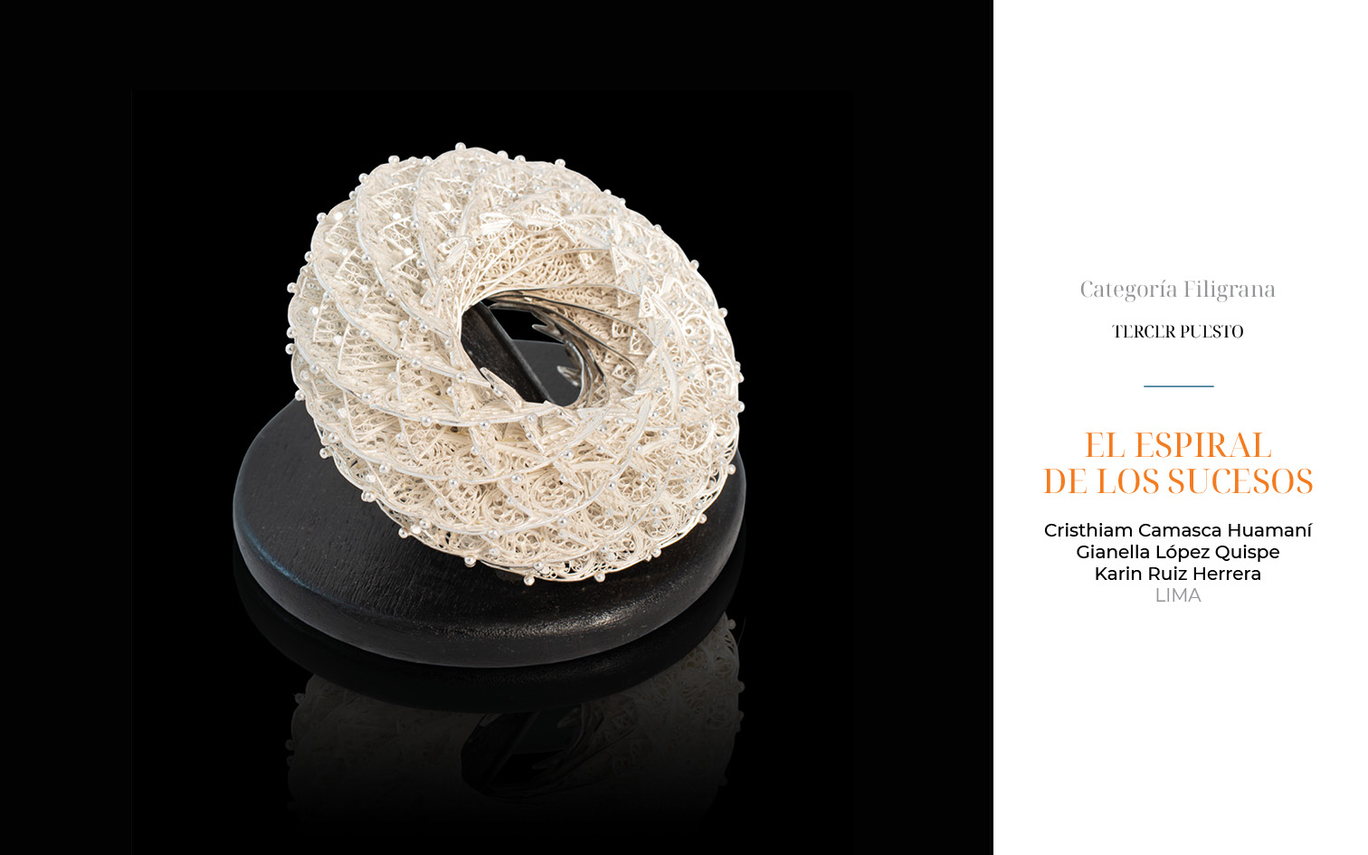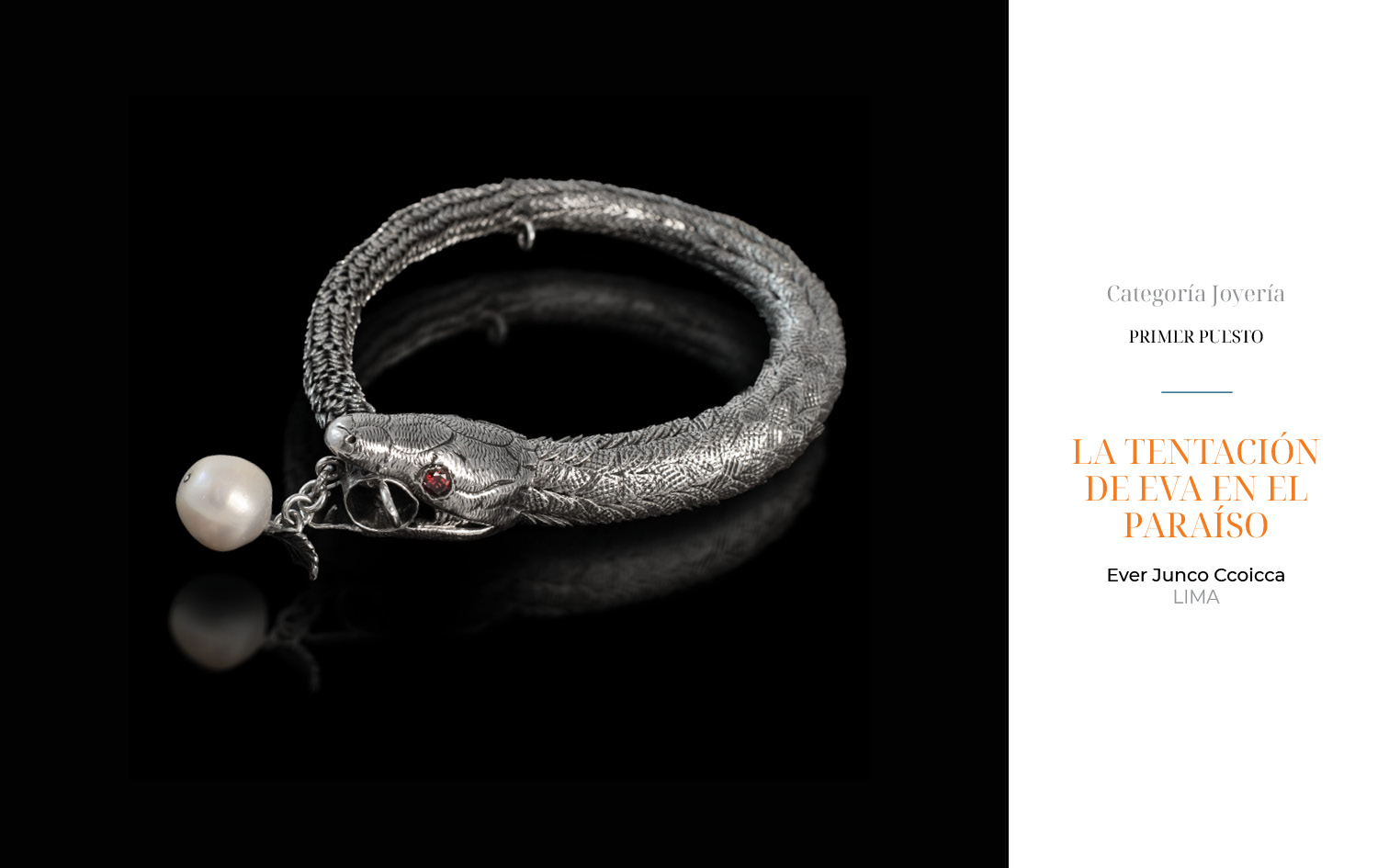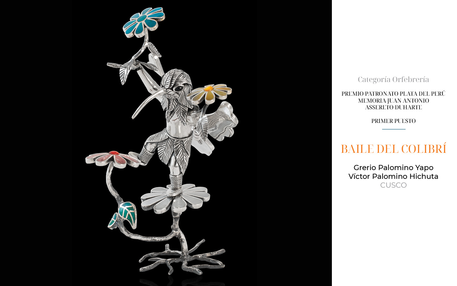 Este año, recibimos 81 obras provenientes de Arequipa, Ayacucho, Apurímac, Cajamarca, Cusco, Lambayeque, Lima y Piura. 23 piezas fueron presentadas en la categoría de filigrana, 36 en joyería y 22 en la categoría de orfebrería.