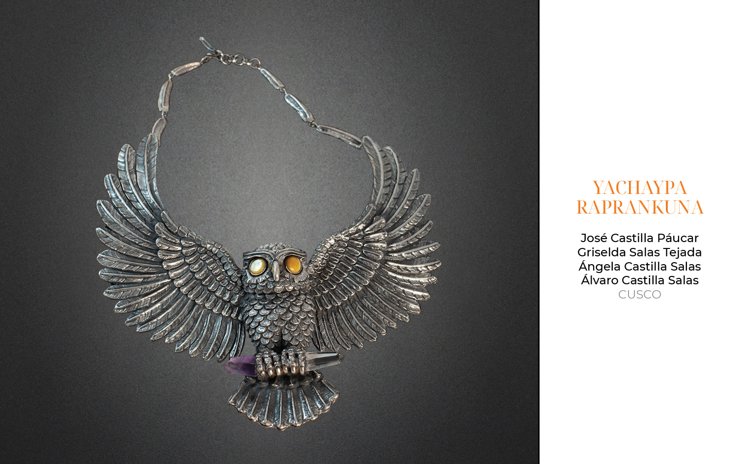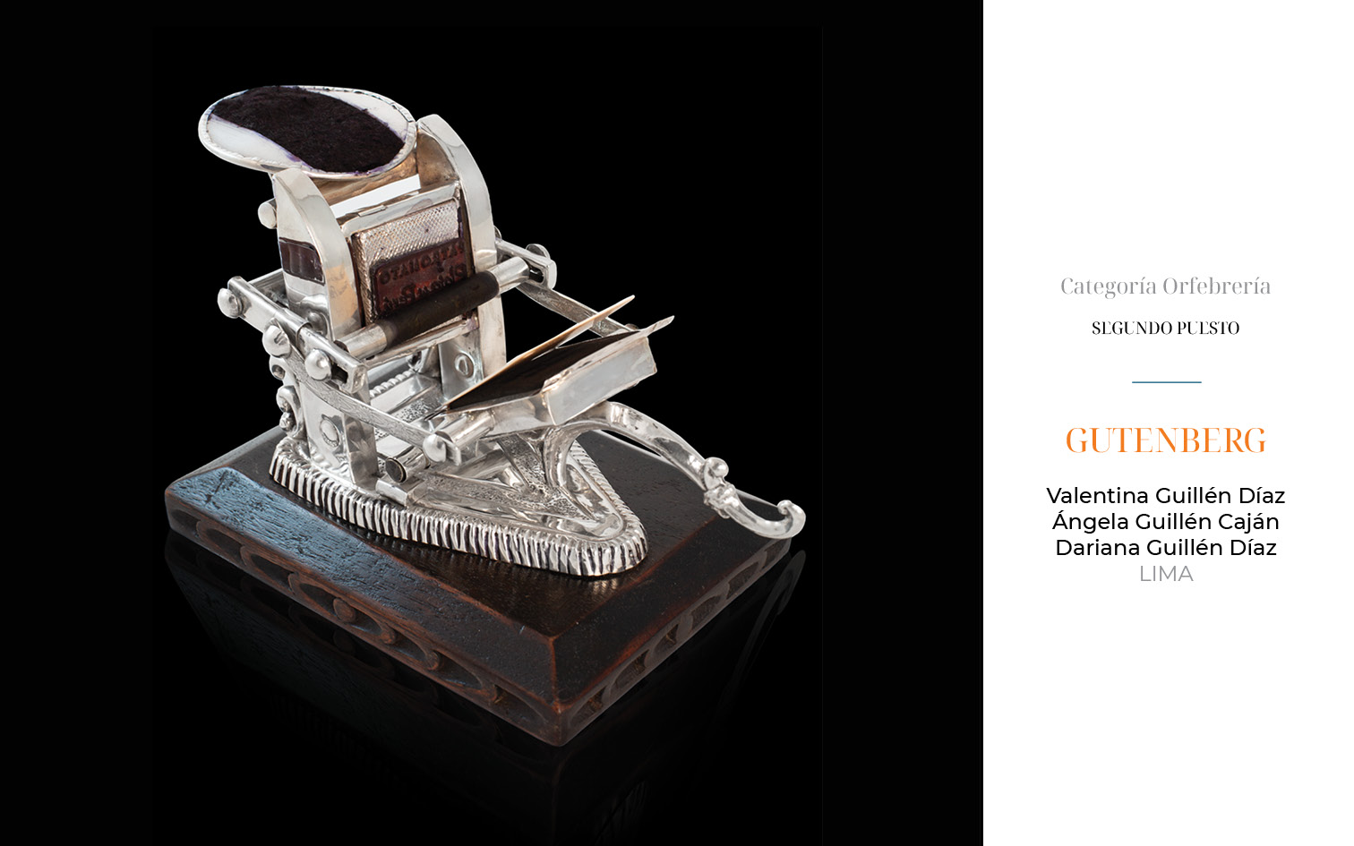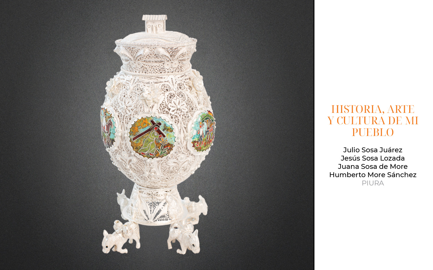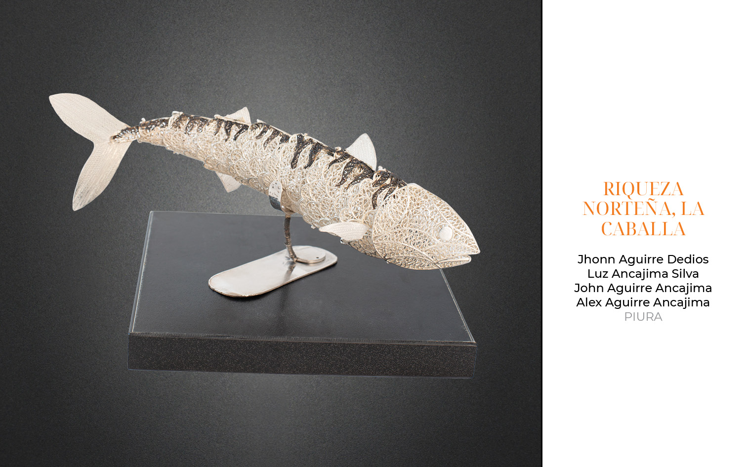 Este año, recibimos 81 obras provenientes de Arequipa, Ayacucho, Apurímac, Cajamarca, Cusco, Lambayeque, Lima y Piura. 23 piezas fueron presentadas en la categoría de filigrana, 36 en joyería y 22 en la categoría de orfebrería.